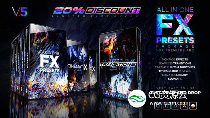 【模板特征】:颜色校正,颜色分级,颜色预设,双色调,胶片滤镜,故障,好莱坞,诱惑,蒙太奇,文本预设